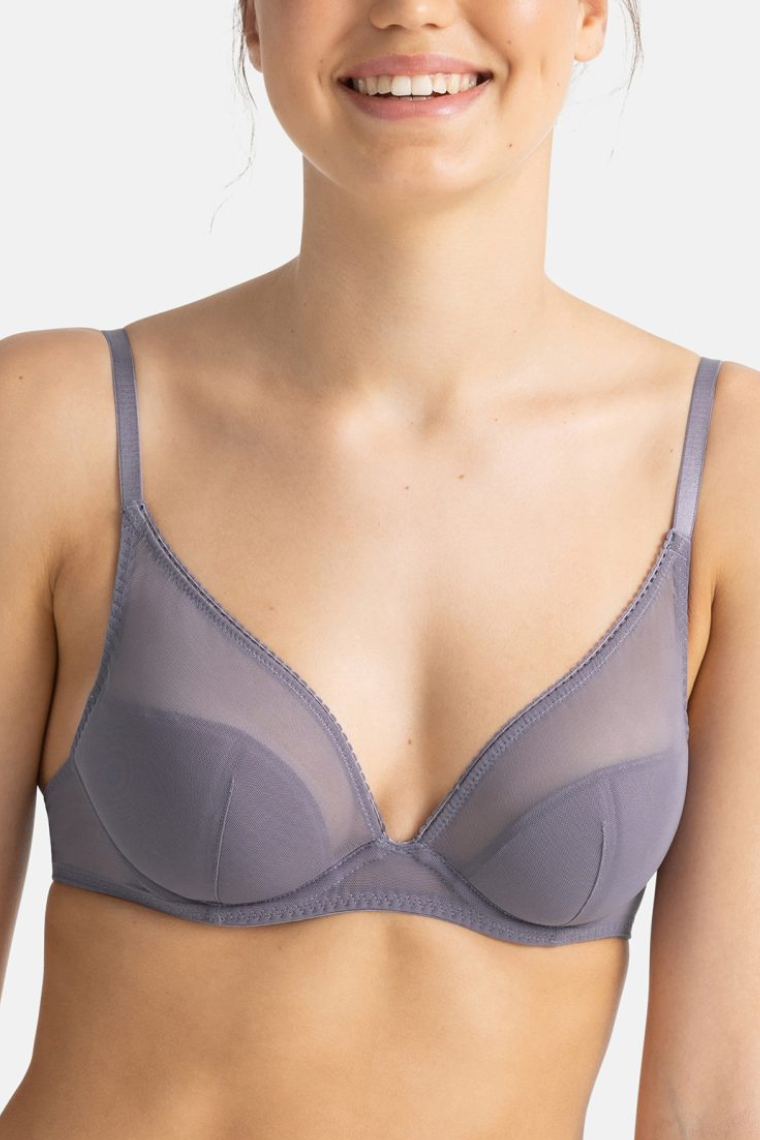 Niski mostek i krój biustonosza sprawiają, że ładnie zbiera i formuje biust. Doskonale sprawdzi się do głębokich dekoltów.W dole miski piankowe usztywnienie. Miseczka wykonana jest z drobnej siateczki. Całkowicie gładka miska i kolor doskonale zastępujący beż sprawiają, że doskonale sprawdzi się na codzień.