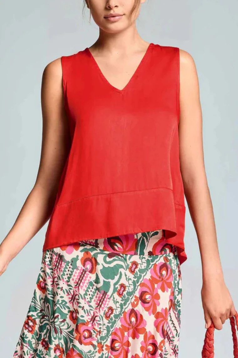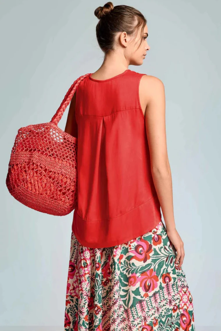 Wiskozowa bluzka damska bez rękawów czerwona