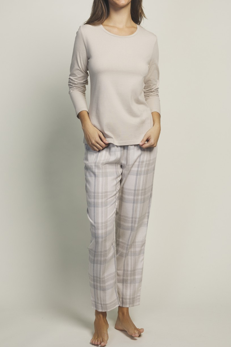 Piżama damska z długim rękawem i długimi spodniami – jasna