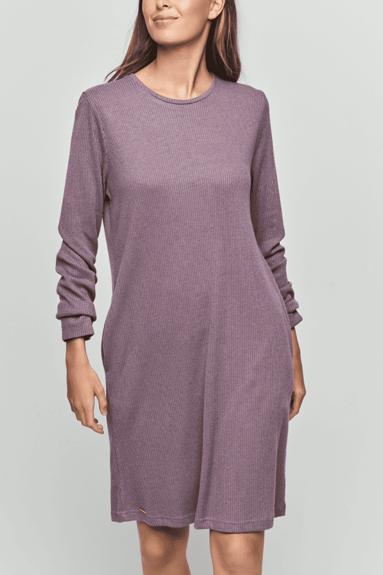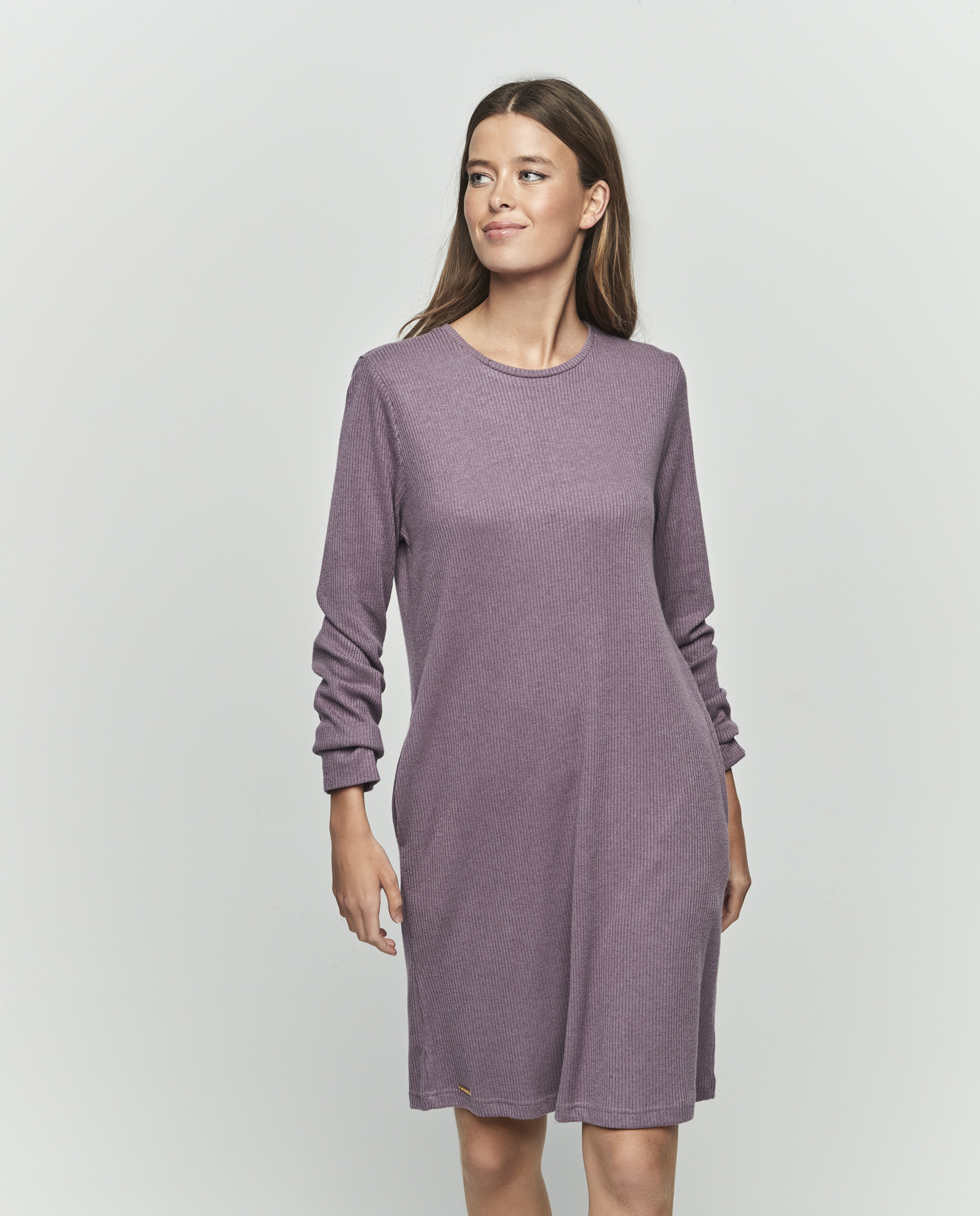 Dzianinowa sukienka damska w kolorze malwy – wygoda i styl na co dzień