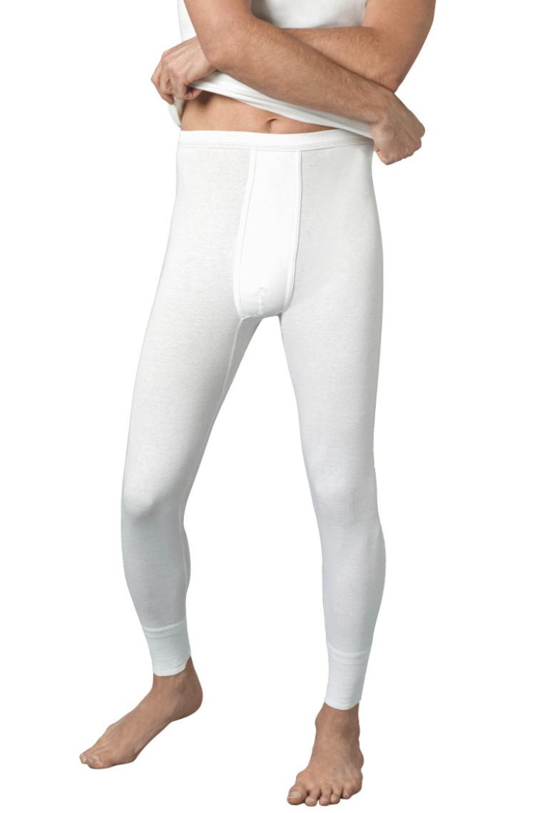 Męskie kalesony bawełniane długie ze ściągaczem – biały