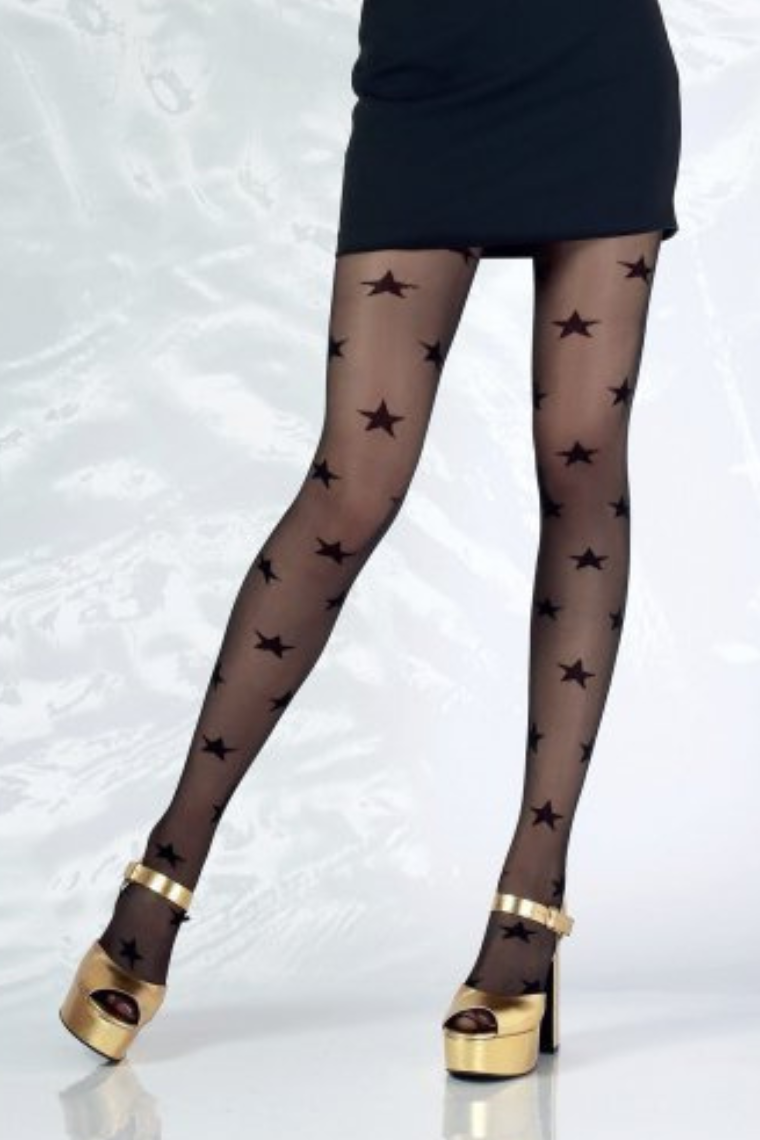 Cienkie czarne rajstopy ze wzorem w gwiazdki. Grubość 20 den.
