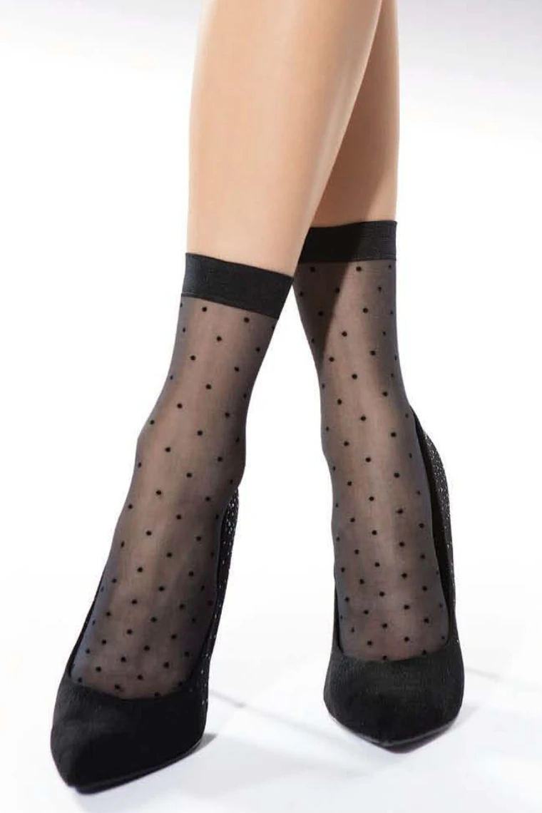 20 DEN Czarne transparentne skarpetki damskie ze wzorem w kropki/ groszki