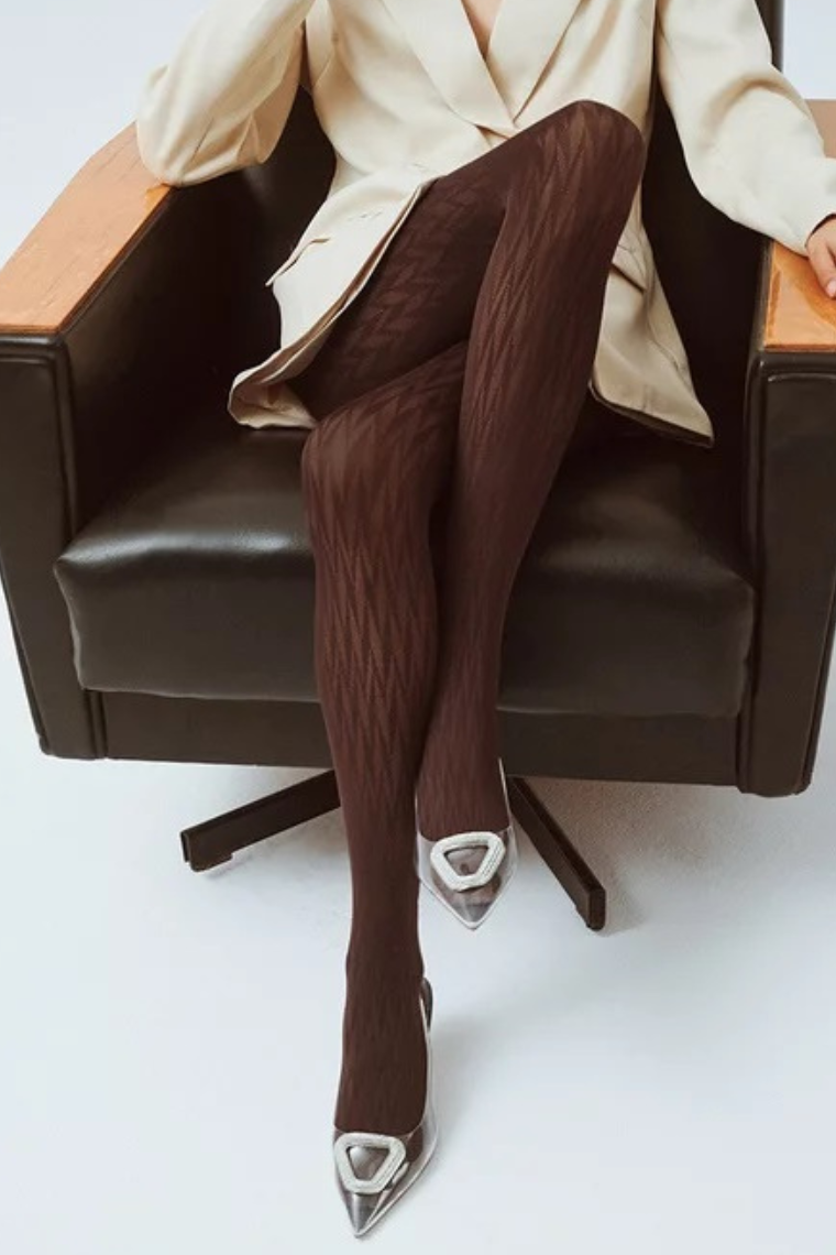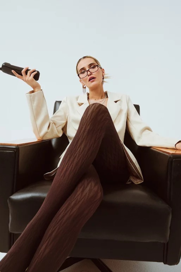 Rajstopy wzorzyste w kolorze kawy Reyna