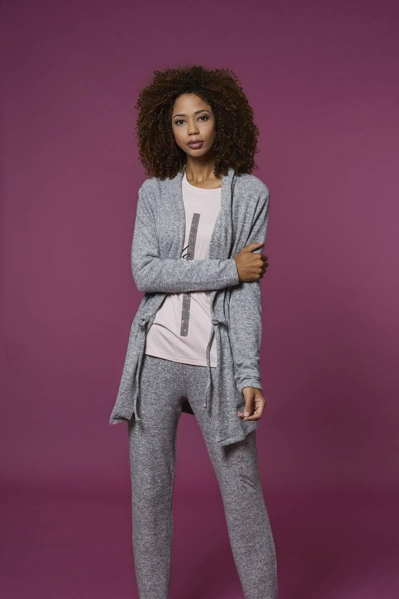 SOLO Szara bluzka damska z aplikacją i długim rękawem szara, wykonana z wysokiej jakości bawełny połączonej z modalem.