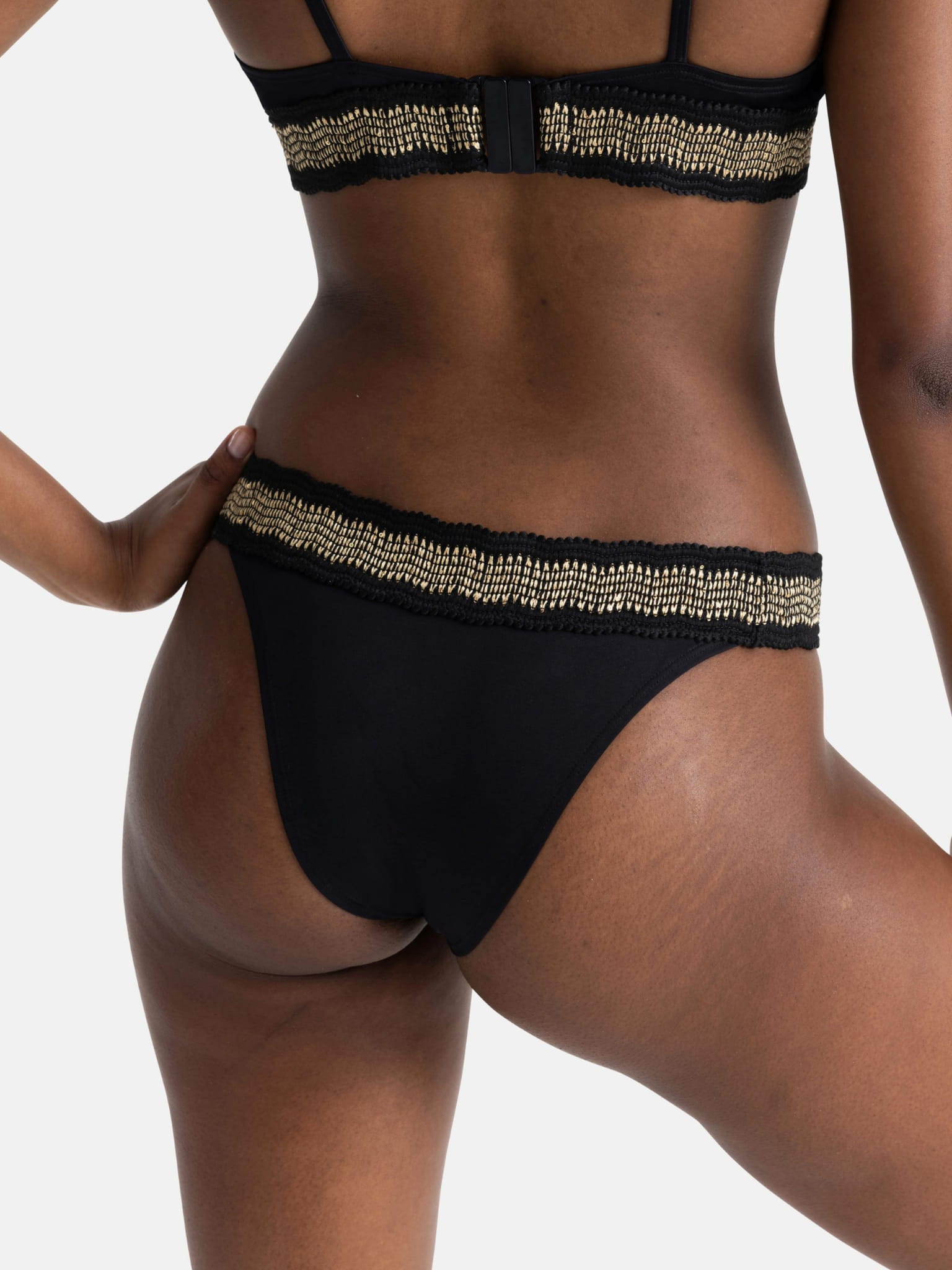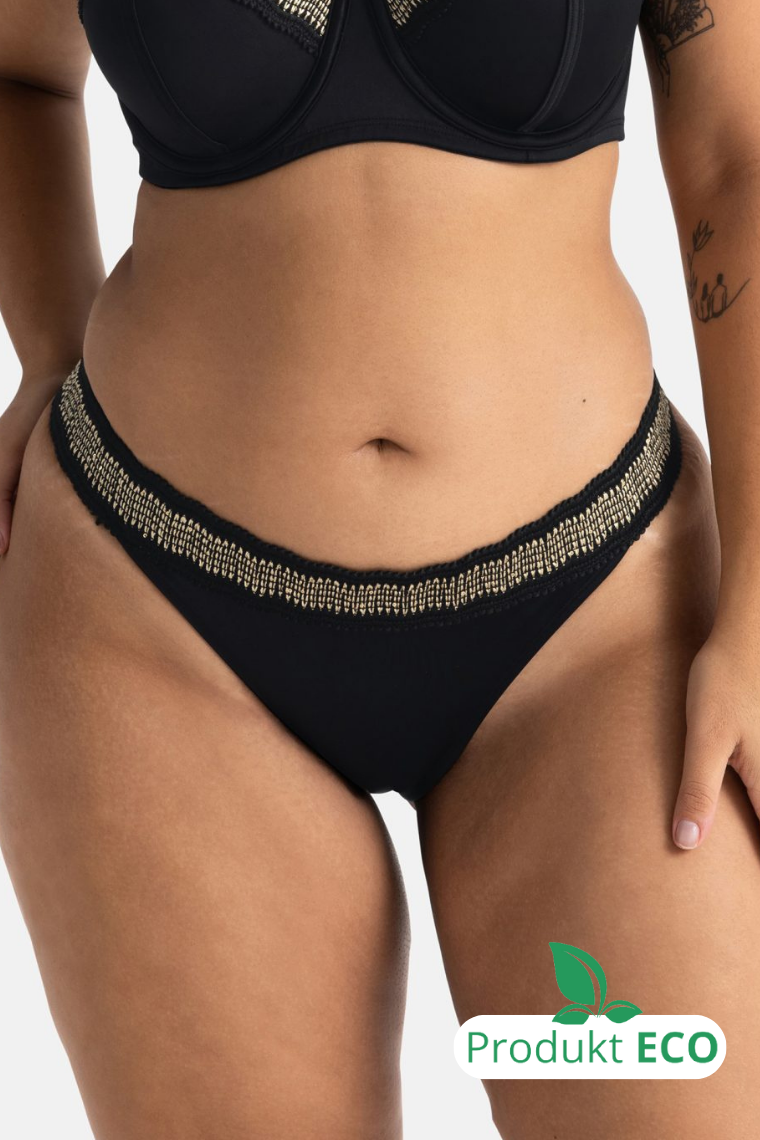 Figi kąpielowe brazyliany Eco – czarne ze złotą aplikacją