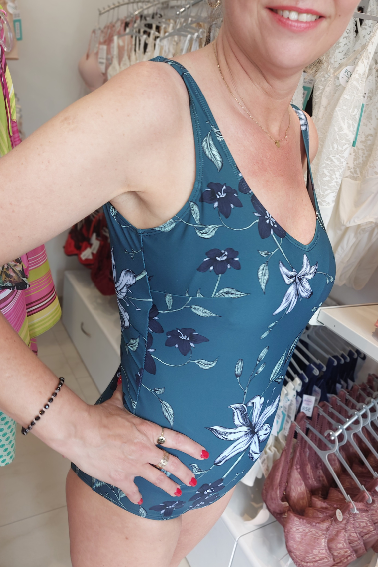Lekkości nadaje głębszy dekolt. Przód kostiumu wzmocniony gorsetem modelującym. Jest to podszycie z mocnej tkaniny w formie siateczki, która wysmukla i modeluje okolicę brzucha i talii (Tummy Control). Strój posiada piankowe wkładkami oraz taśmą dla lepszego uniesienia i podkreślenia biustu.