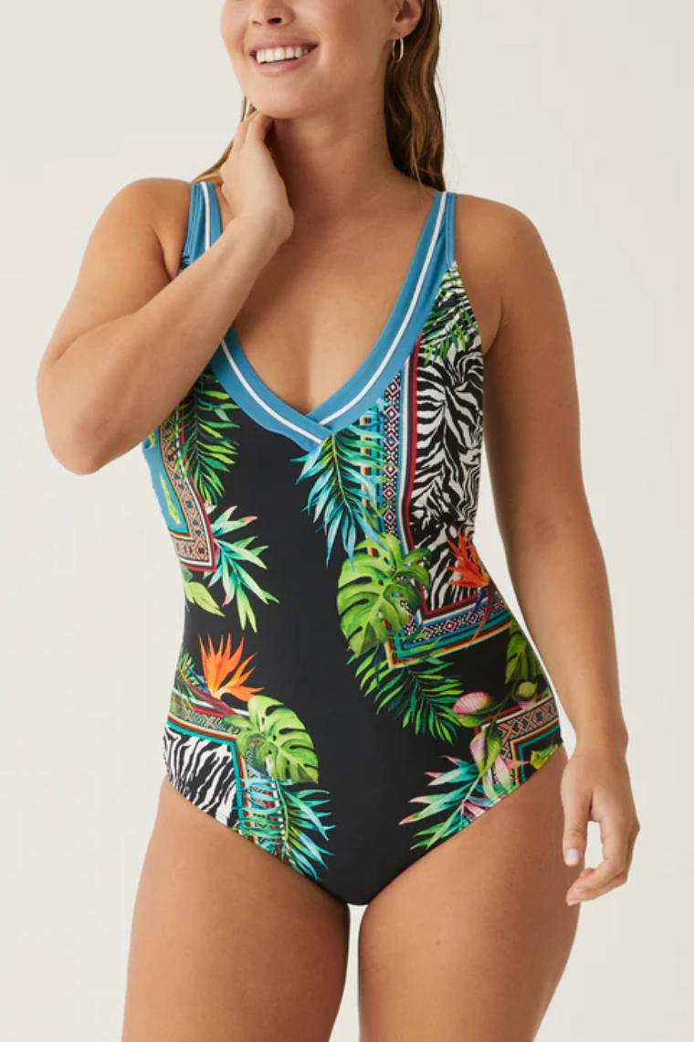 Zabudowany jednoczęściowy strój kąpielowy modelujący sylwetkę w dużych rozmiarach.