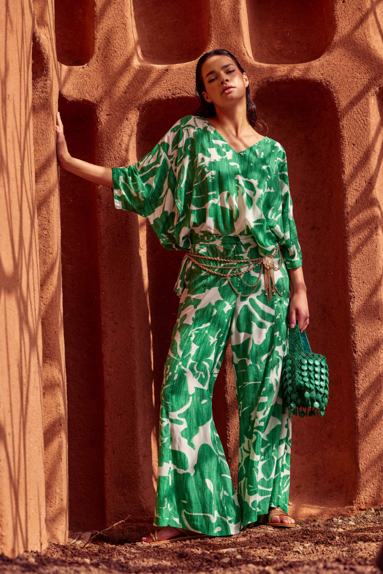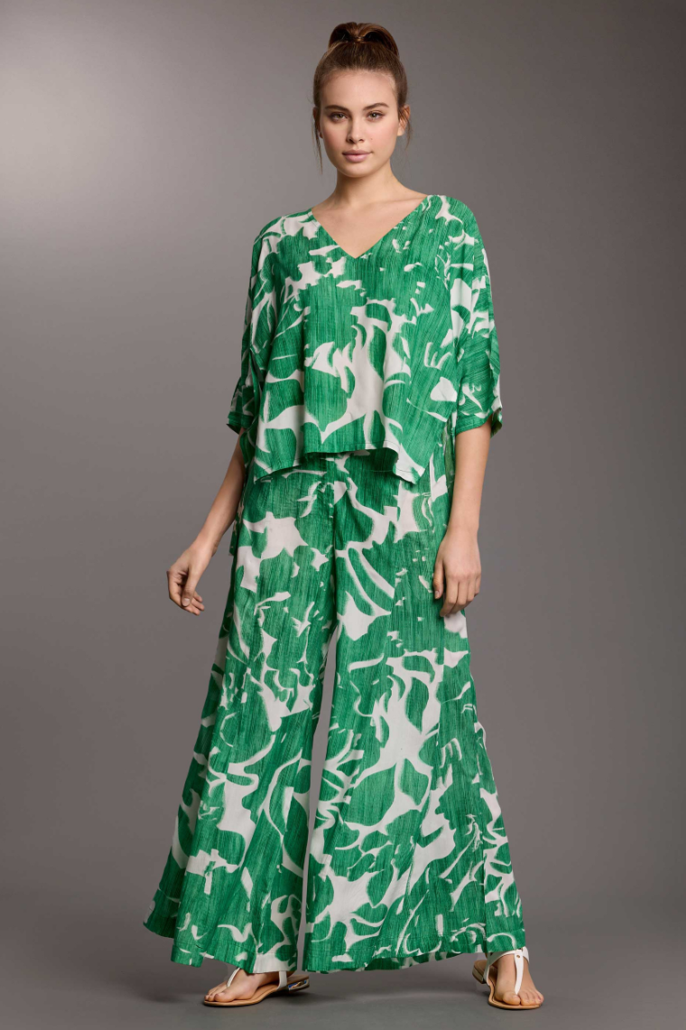 Eleganckie i wygodne letnie spodnie damskie wykonane w 100% z wysokiej jakości wiskozy, która jest przewiewna, lekka i pięknie układa się na sylwetce. Idealne na ciepłe dni, zapewniają komfort i swobodę ruchów.