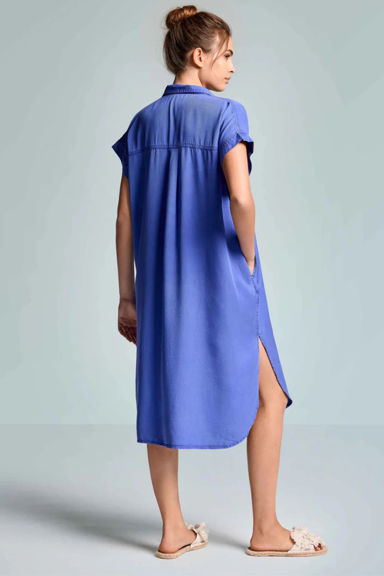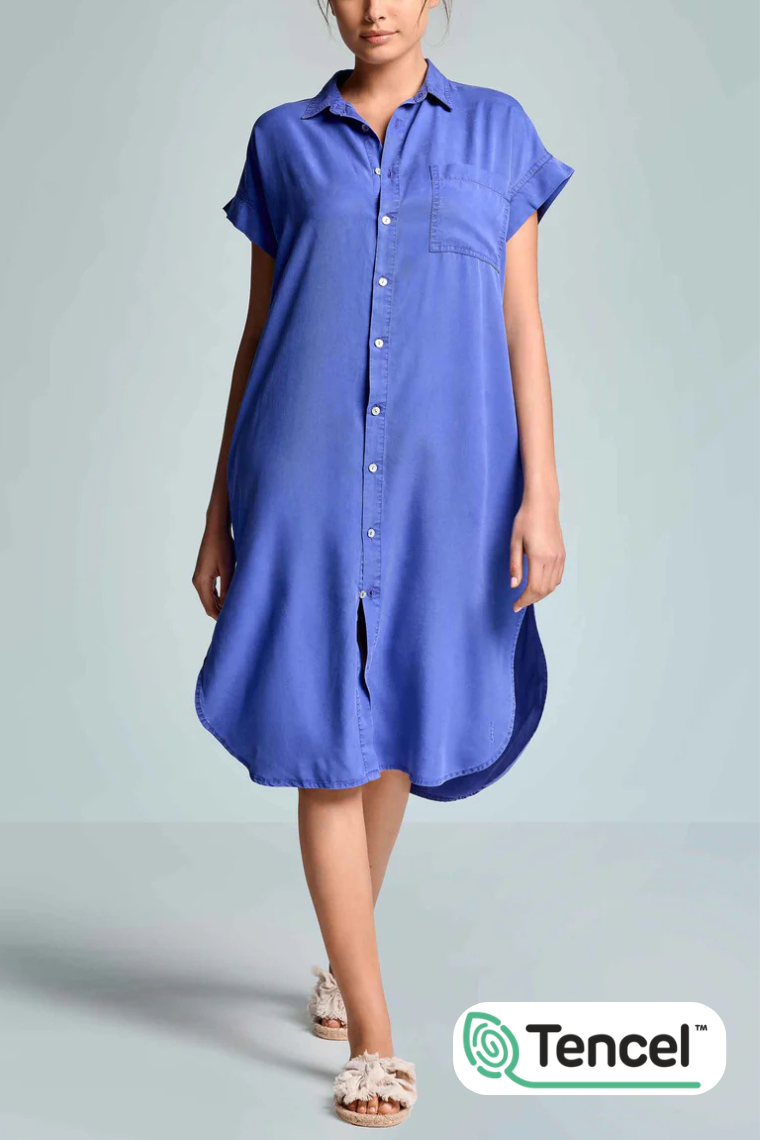 Stylowa sukienka koszulowa o długości midi, wykonana z Tencelu – nowoczesnego włókna o wysokiej przepuszczalności powietrza i doskonałej chłonności. Materiał jest lekki, miękki i jedwabisty w dotyku, a przy tym trwały i odporny na częste pranie, co zapewnia komfort użytkowania przez długi czas.