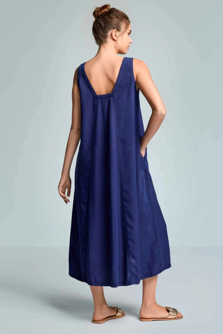 Sukienka maxi bez rękawów z Tencelu granatowa