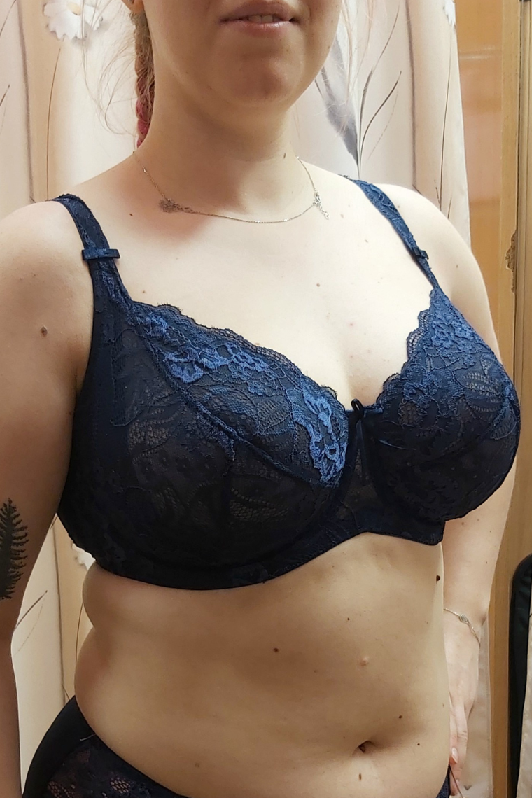 Vicky – koronkowy biustonosz na fiszbinie dla pełniejszych piersi, granatowy